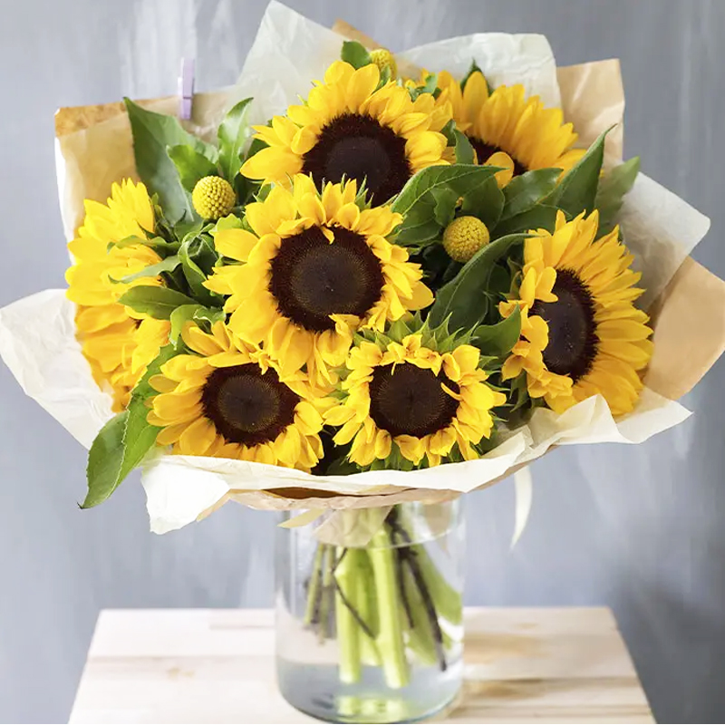 Sunflowers are grown in open fields under optimal sunlight, ensuring healthy blooms and strong stems.